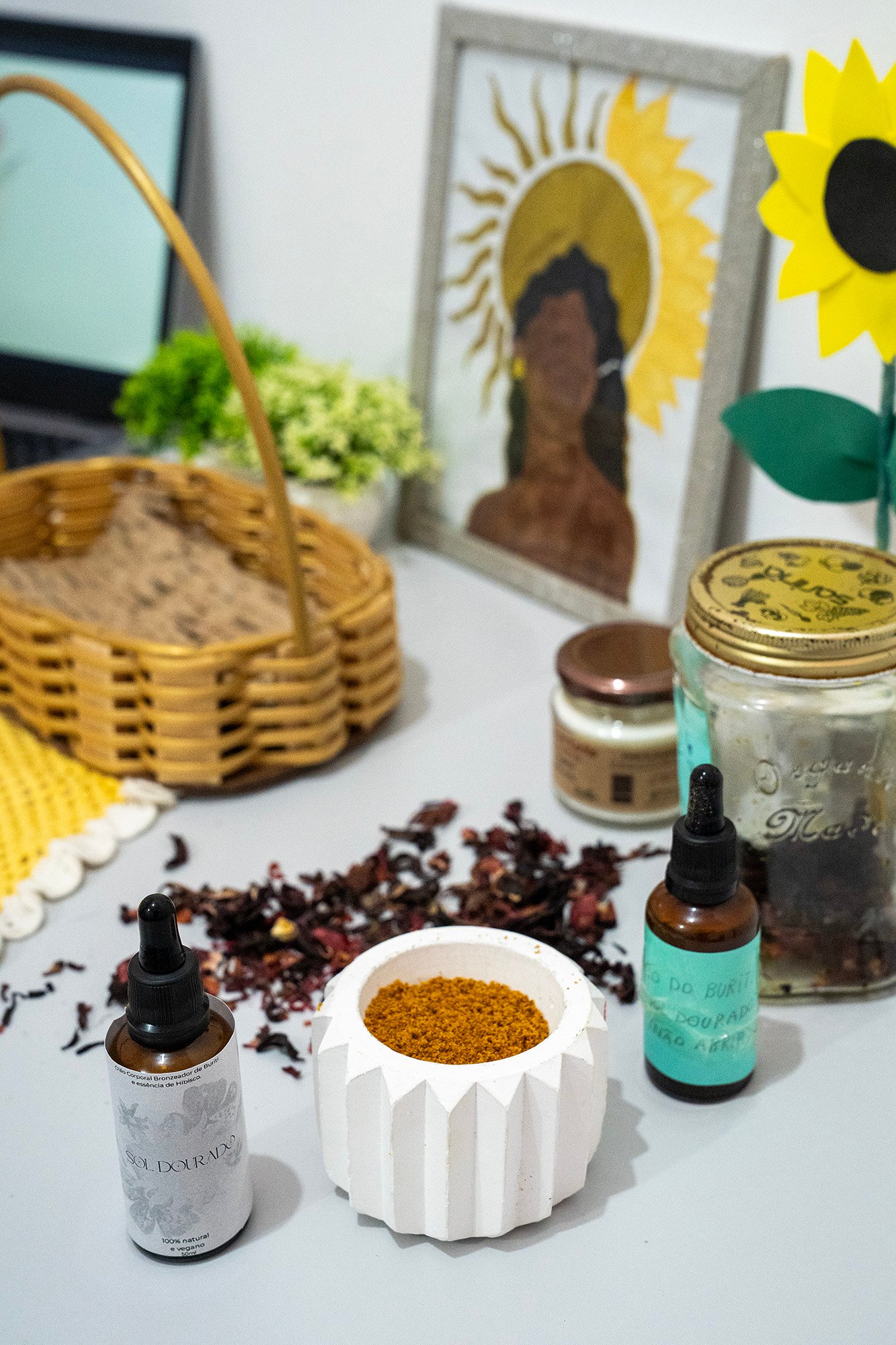 Batizado de Sol Dourado, o produto pode ser usado como bronzeador ou pós-bronze para regeneração da pele, oferecendo coloração dourada sem exposição solar e sem aditivos químicos prejudiciais. “Nosso óleo bronzeador é totalmente natural, à base de recursos regionais, sem aditivos químicos prejudiciais. Pode ser usado como bronzeador ou pós-bronze para regeneração da pele, proporcionando aspecto bronzeado sem exposição solar”, afirmam Alice Mascarenhas e Riana Lima, integrantes do grupo.