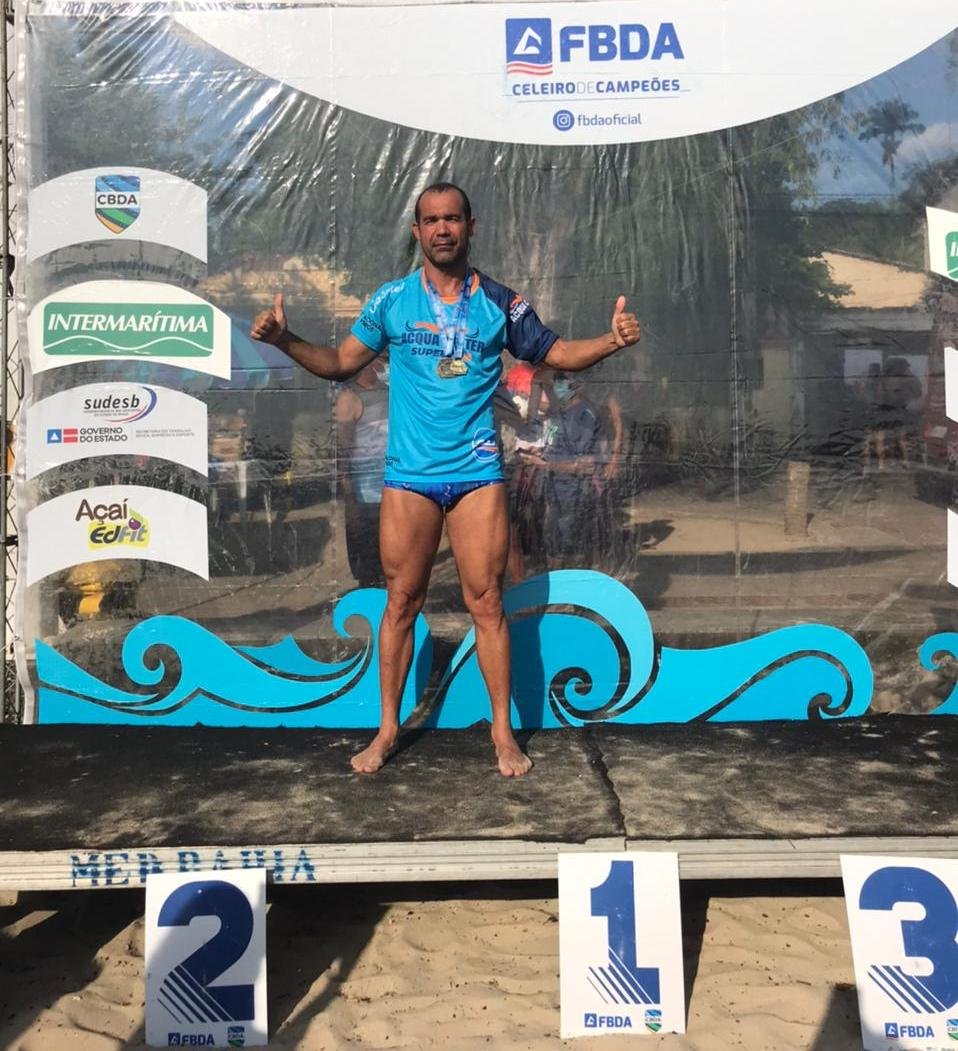 Aos 47 anos, o cabo das Rondas Especiais (Rondesp) Leste Gabriel Rangel superou as próprias expectativas e conquistou o terceiro lugar do Campeonato Baiano de Maratonas Aquáticas – Troféu Renato Novis. O evento ocorreu no sábado (9), na praia de São Tomé de Paripe, em Salvador.