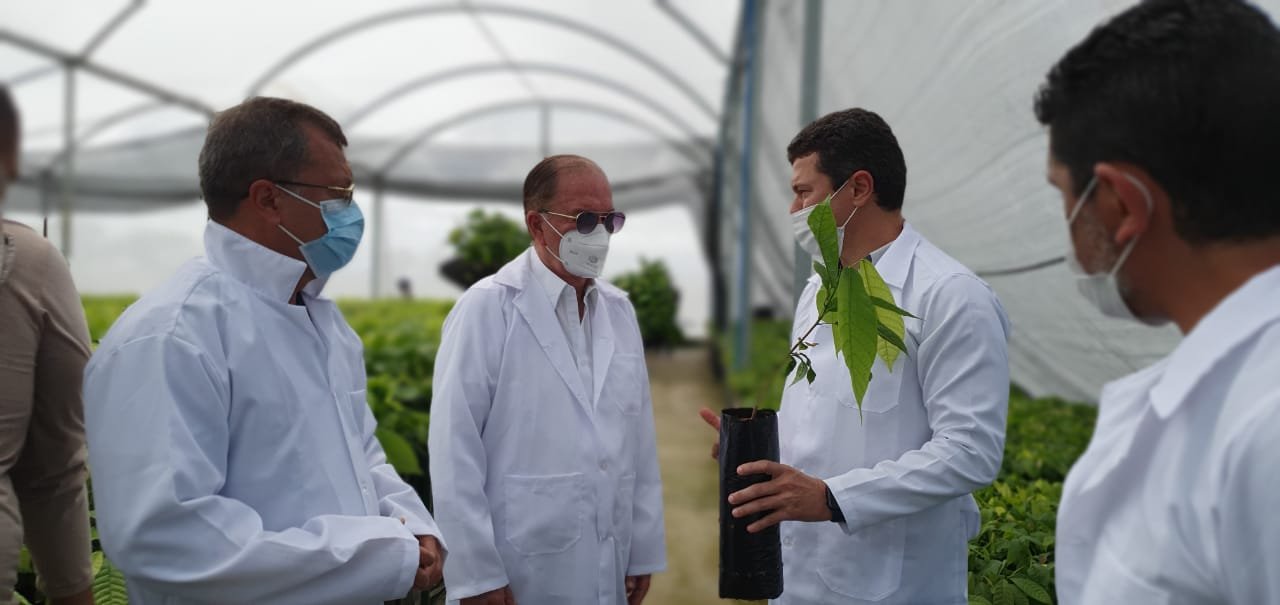 Graças à parceria de três empresas, Grupo Schmidt Agrícola, Tamafe Tecnologia, especializada em mudas de citricultura e a TFR Consultoria Agrícola, o Oeste baiano ganhou mais um projeto de cacauicultura. A Bio Brasil, iniciado há dois anos com pesquisa e desenvolvimento de cacau em viveiro na Fazenda Solaris no município de Riachão das Neves, recebeu a visita do vice-governador João Leão, secretário do Planejamento, acompanhado de Almir Silva e Paulo Marrocos da Comissão Executiva do Plano da Lavoura Cacaueira (Ceplac) e pelo reitor da Universidade Federal do Oeste da Bahia, Jacques Antonio de Miranda. A região já abriga outros produtores da cultura, a exemplo do grupo Santa Colombo, que investe na produção de cacau no município de Cocos.