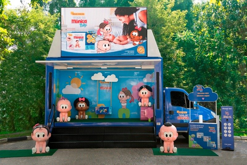 O caminhão da Turma da Mônica Baby exibe esculturas dos personagens bebês da turminha e tem um espaço instagramável com balanço em formato de fralda, bancos, flores, coleira do Floquinho, grama sintética, balcão de atendimento, display de álcool em gel e um time de promotoras para receber adultos e crianças e tornar a brincadeira inesquecível. O veículo foi desenvolvido pela Brandtruck, especializada na criação, construção e ativação de unidades móveis promocionais.