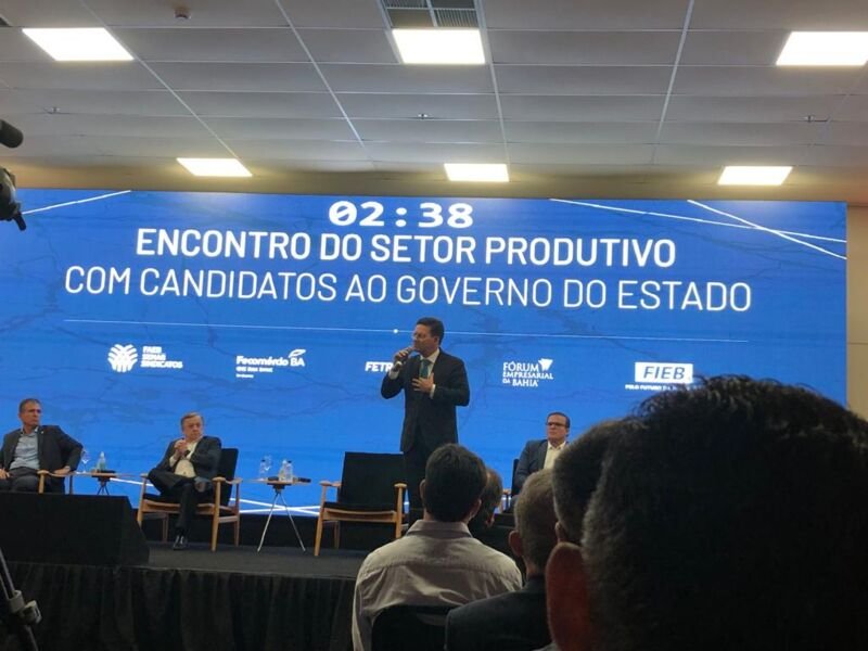 Os três candidatos ao governo estadual da Bahia mais bem colocados nas pesquisas – Jerônimo Bonfim (PT), João Roma (PL) e ACM Neto (União Brasil) – se reuniram com as principais lideranças e dirigentes do setor produtivo, econômico e industrial do estado. Não houve embate direto.