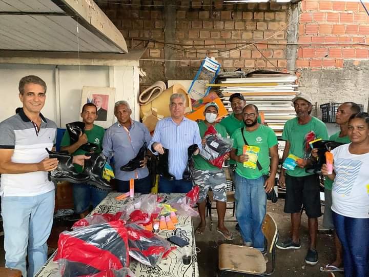 Vice-líder do governador Rui Costa (PT) na Assembleia Legislativa, o deputado estadual Robinson Almeida (PT) entregou, através de emenda parlamentar de seu mandato, nesta sexta-feira (22), Equipamentos de Proteção Individual (EPIs) para integrantes da Cooperativa de Reciclagem do Sertão, no Jardim Cruzeiro, em Feira de Santana. A entrega do kit, composto por botas, luvas, protetores solar e capas, foi feita pelo deputado em iniciativa articulada com o deputado federal Zé Neto (PT) e o vereador Sílvio Dias (PT).