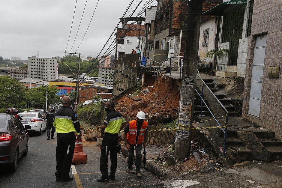 A chuva forte desta terça-feira (16) em Salvador fez com um muro de contenção de uma encosta desabasse, gerando um deslizamento de terra na Fazenda Grande do Retiro, ainda na madrugada. Não houve feridos.