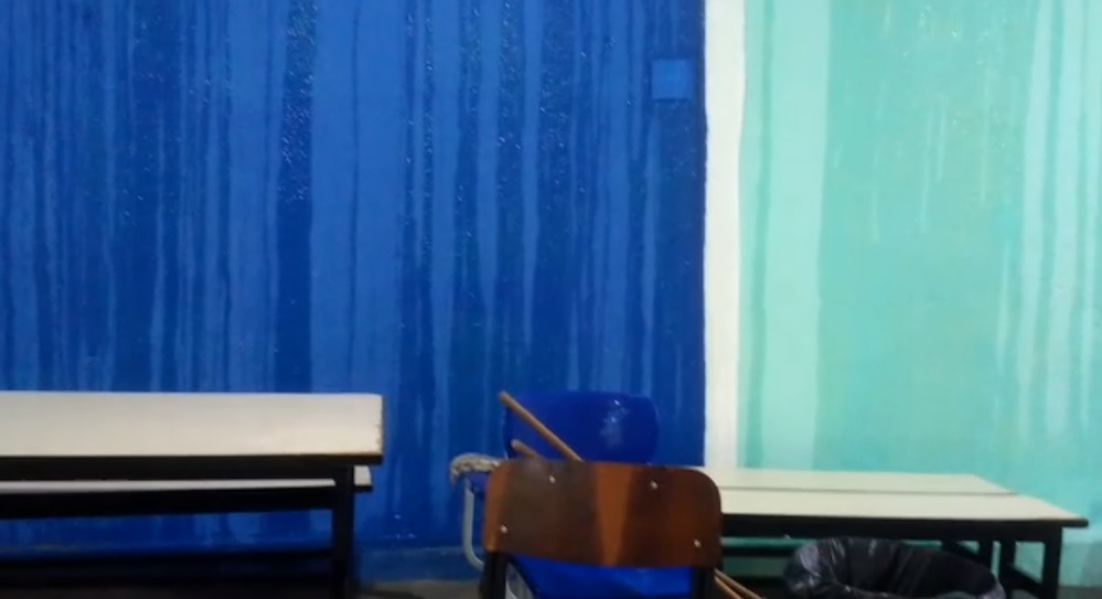 Mas o momento de comemoração durou bem pouco: só até a primeira chuva. Após alguns milímetros de água, já deu para perceber que os milhões investidos na construção não impediriam a que a chuva escorresse pelas salas, alagasse o pátio e causasse inúmeros prejuízos a professores e alunos. “O teto está aberto e algumas salas estão infiltrando [água]. Quando chove enche a parte do jardim e do pátio”, contou um funcionário da instituição que preferiu não se identificar.