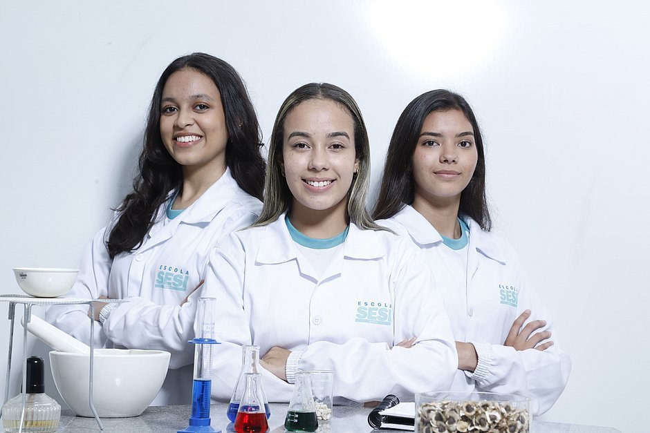 As estudantes Ana Luiza Oshiro, Maria Eduarda Brandão e Sarah Fernandes de Oliveira, da Escola SESI Ignez Pitta de Almeida, de Barreiras, embarcam na próxima sexta-feira (6) rumo aos Estados Unidos, onde vão representar a Bahia na International Science Engineering Fair – Regeneron ISEF, considerada a maior feira de ciências e engenharia do mundo.