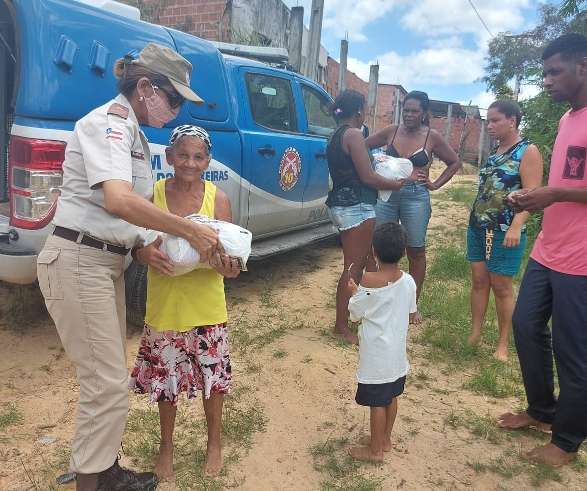 Empenhados em abastecer a dispensa de famílias carentes do município de Candeias, na Região Metropolitana de Salvador (RMS), equipes da 10ª Companhia Independente da Polícia Militar (CIPM/Candeias) entregaram, na manhã desta segunda-feira (22), 25 cestas básicas para moradores do distrito de ‘Passagem dos Teixeiras’.