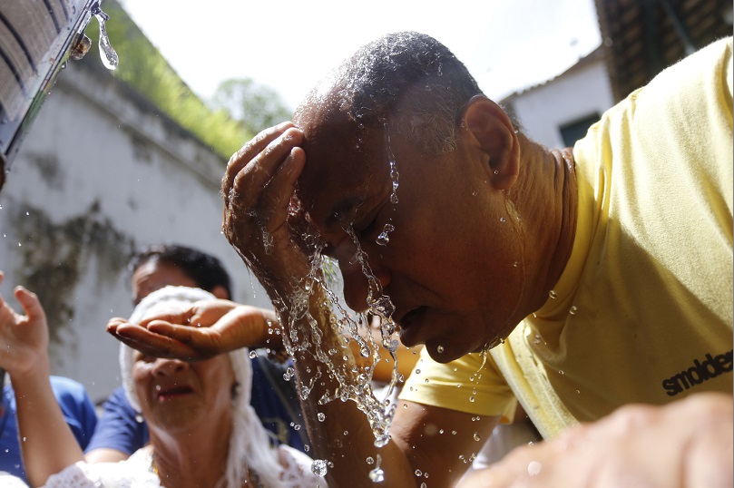 A aposentada Noélia Santos, 75, levou um pouco da água. Em sua residência pretende distribuir entre os familiares, para que todos possam ter a chance de se lavar. “É a fé que cura”, diz.