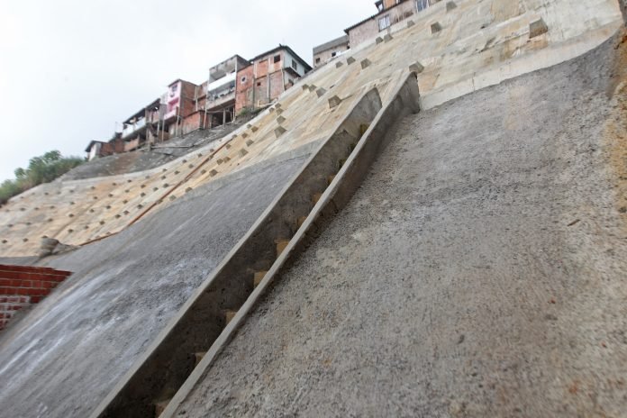 Nos 120 metros de extensão da encosta, os técnicos realizaram um minucioso estudo do solo e da topografia do local. A tecnologia é o diferencial que a Conder vem colocando em prática na Bahia, desde que teve início o Programa Estadual de Prevenção de Desastres Naturais. Segundo o diretor da Conder, Maurício Mathias, “é um trabalho minucioso e criterioso, que exige técnica e muitos cuidados. Após o início do programa de prevenção do Governo do Estado, o número de deslizamentos diminuiu consideravelmente”.