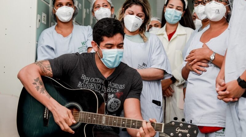 O cenário descrito representa a homenagem realizada pelo HS, na semana de 09 a 13 de agosto, como forma de prestigiar profissionais de diferentes áreas que estiveram na assistência direta a pacientes infectados pela Covid-19 internados em leitos de terapia intensiva. A ação contou, ainda, com a projeção de um vídeo composto por dezenas de fotos de profissionais, tiradas pelas próprias equipes com seus celulares.