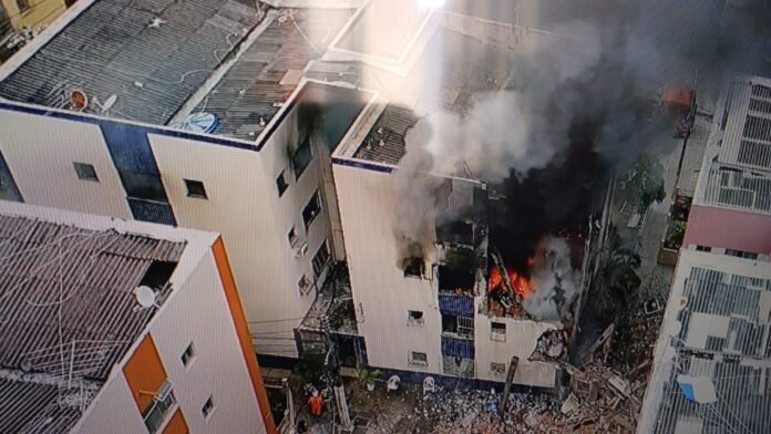 Em nota, a corporação confirmou que as equipes foram acionadas para atender a uma ocorrência de vazamento de gás liquefeito de petróleo (GLP). Os militares seguem realizando a retirada de moradores que ficaram presos no interior da edificação, após a estrutura sofrer colapso parcial.