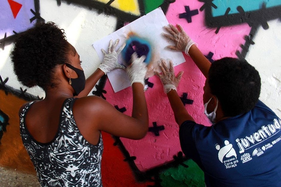 A equipe de arte-educação do Corra pro Abraço, responsável por mediar a atividade nos territórios, também contou com um momento de formação sobre a história e o legado da Conferência de Durban. As oficinas de grafite serão ministradas por Andressa Munique e Caíque Sapho, artistas visuais de Salvador.