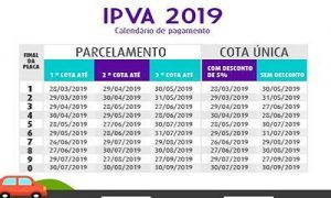 Os débitos referentes à taxa de licenciamento e às multas de trânsito deverão ser pagos até a data de vencimento da terceira parcela. Os débitos anteriores do IPVA ainda não notificados também podem ser divididos em três vezes, juntamente com o IPVA 2019. No entanto, o proprietário que perder o prazo da primeira cota deixa de ter o direito ao parcelamento em três vezes.