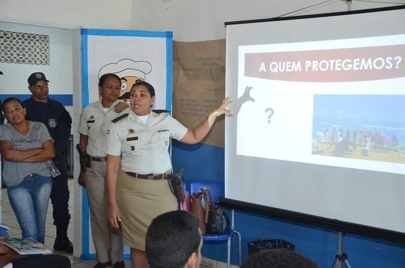 Em ação da campanha do Agosto Lilás pelo Fim da Violência Contra as Mulheres, a Prefeitura de Itanagra convidou, nesta quarta-feira (17), a equipe da Guarda Municipal, juntamente com a Ronda Maria da Penha de Lauro de Freitas, para fazer uma palestra sobre o tema, na Escola Municipal Aldeia dos Curumins.