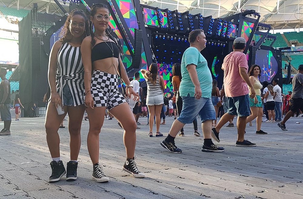 O publicitário Adson Silva, 25 anos, veio na companhia de dois amigos que esperam ansiosos a segunda atração do dia: Anitta, que sobe ao palco da Arena Fonte Nova, às 17h. O designer gráfico Uendel Araújo, 23, e o também publicitário Willian Santana, 20, que são tímidos diante das lentes, garantem que vão curtir o show da funkeira carioca do começo até o fim.