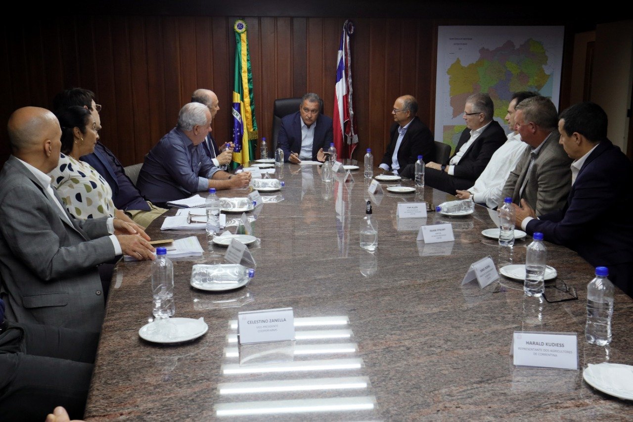 O projeto para a construção do Complexo Industrial no oeste da Bahia foi apresentado com outros pleitos em andamento à Secretaria de Desenvolvimento do Estado (SDE), durante evento realizado para assinatura do protocolo de intenções, nesta segunda-feira (15), na sede da Governadoria do Estado, no CAB. Estiveram presentes o governador Rui Costa, gestores das secretarias de Agricultura (Seagri), Meio Ambiente (Sema), Desenvolvimento Econômico (SDE), Infraestrutura (Seinfra), Casa Civil e representantes da Impacto (Ibea) e de suas parceiras no projeto, a ICM, empresa americana detentora da tecnologia, a Enesa, a Petrobahia e os empresários do agronegócio baiano, Celestino Zanella e Harald Kudiess.