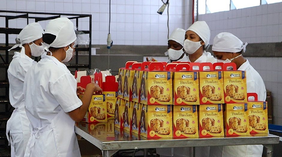 Para dar conta da produção dos panetones Santa Dulce, que completa 25 anos neste Natal, o Centro de Panificação das Obras Sociais Irmã Dulce (Osid) contratou cerca de 60 funcionários temporários e prevê aumentar a produção em mais de 20%, se comparado com o ano anterior. Mesmo produzindo outros alimentos durante o ano, é neste período que a produção cresce e o lucro com a venda de panetones chega a ser equivalente a 40% do total do faturamento.