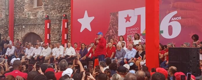 O presidente Luiz Inácio Lula da Silva (PT) discursou, neste sábado (7), durante o ato de comemoração de aniversário de 46 anos do PT, em um evento realizado em Salvador, no bairro do Comércio, que “será um soldado” e que a eleição será uma “guerra”.