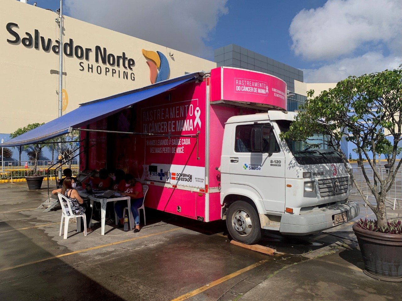 Esta é a última semana para realizar mamografia gratuita no Salvador Norte. A Unidade Móvel da Secretaria de Saúde do Estado da Bahia- Sesab fica até sábado, dia 16/10, no estacionamento externo do shopping. O exame é destinado a mulheres de 40 a 69 anos e os atendimentos são exclusivamente com horário previamente agendado pela internet, através do site www.saude.ba.gov.br. No dia marcado deve-se apresentar um documento de identidade com foto, cartão do SUS e um comprovante de endereço. O funcionamento da carreta no shopping é de segunda a sábado, das 8h às 18h. A meta é atender 140 mulheres, por dia.