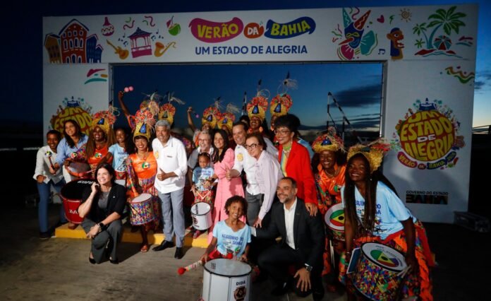 O governador Jerônimo Rodrigues (PT) lançou, nesta quarta-feira (17), o Projeto Verão 2025/2026, que traz como tema “Verão da Bahia. Um Estado de Alegria!”. A iniciativa vai além de um calendário de festas e reúne ações integradas do Governo do Estado nas áreas de segurança, cultura, turismo, saúde, direitos humanos e infraestrutura, com o objetivo de garantir um verão seguro e acolhedor para baianos e turistas.