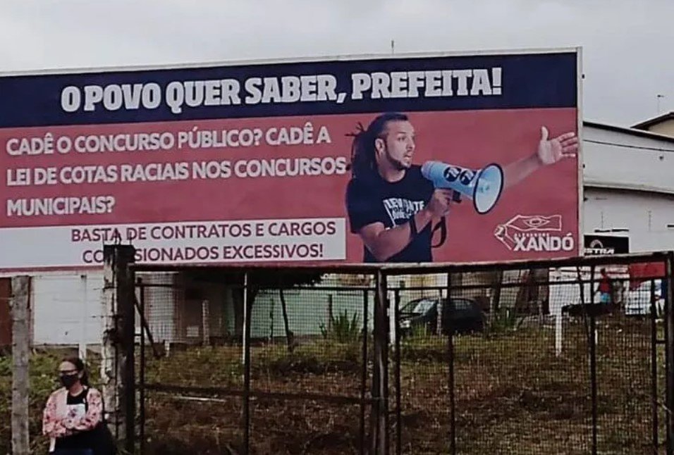 O vereador Alexandre Xandó (PT) atraiu a curiosidade da população de Vitória da Conquista, sudoeste da Bahia, após protestar de forma inusitada contra a gestão da prefeita Sheila Lemos (União Brasil). O parlamentar usou um outdoor para pedir a realização de concurso público no município.